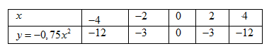 Ta có bảng giá trị hàm số \(y =  – 0,75{x^2}\)