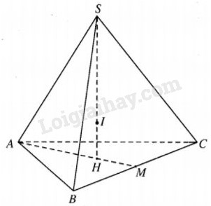 Mặt khác , tâm I của mặt cầu thuộc đường cao SH nên dễ thấy  \(\widehat {ISA} = \widehat {ISB} = \widehat {ISC},\) tức là \(\widehat {HSB} = \widehat {HSA} = \widehat {HSC},\) từ đó SA=SB=SC.