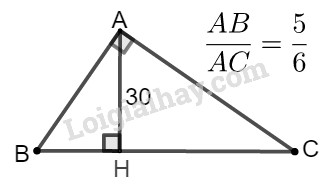 Theo đề bài: \(\dfrac{{AB}}{{AC}} = \dfrac{5}{6}\) và \(AH = 30(cm)\)  (2)