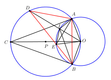 Cho điểm P ở ngoài đường tròn (O). Vẽ đường tròn tâm (P) bán kính PO. Hai đường tròn cắt nhau tại A và B. Đường thẳng OP cắt đường tròn (P) tại điểm thứ hai C.