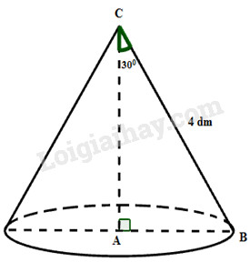 Khi quay tam giác \(ABC\) quanh cạnh \(AC\) ta được một hình nón có chiều cao \(h = AC = \dfrac{{4\sqrt 3 }}{3}dm\), bán kính đáy \(R = AB = 2dm\) và đường sinh \(BC = 4dm\).