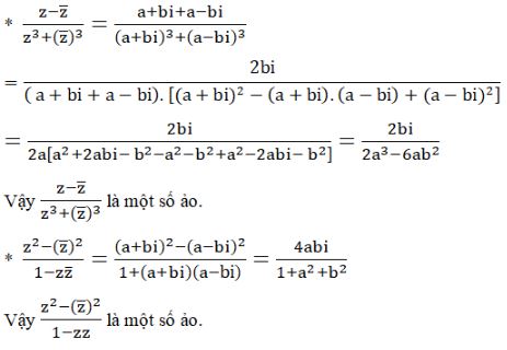 \(\Rightarrow {{z – \overline z } \over {{z^3} + {({\overline z })^3}}}\) là số ảo.