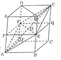 Qua \(\displaystyle EF\) ta dựng một mặt phẳng song song với đáy hình hộp, mặt phẳng này cắt \(\displaystyle AA’\) ở \(\displaystyle P\) và cắt \(\displaystyle CC’\) ở \(\displaystyle Q\).