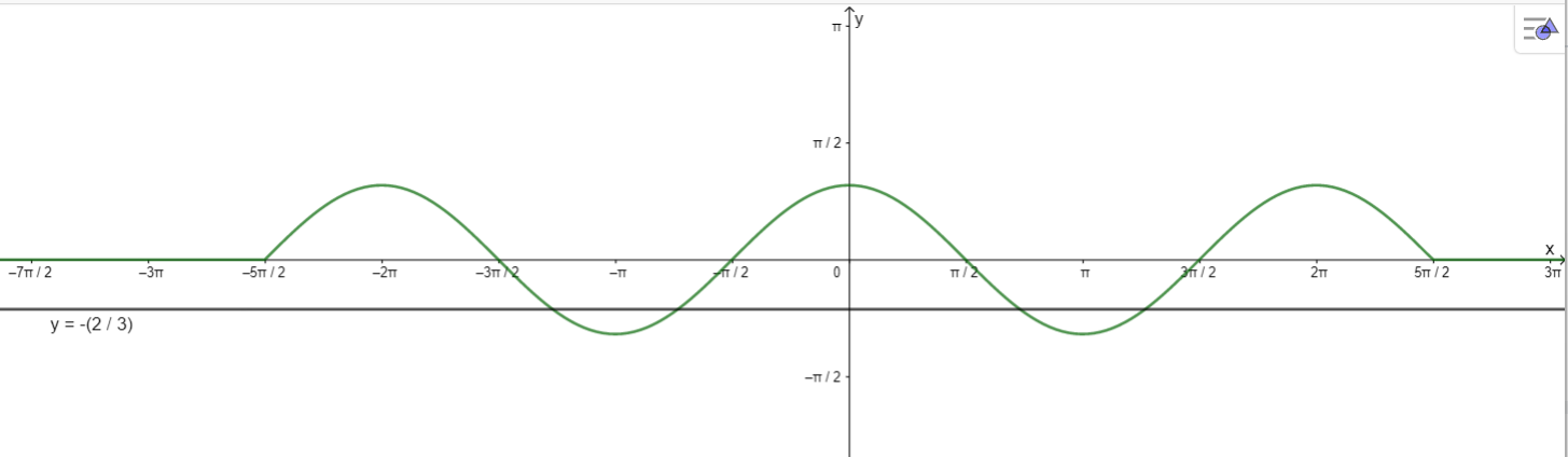 Vẽ đồ thị hàm số \(y = \cos x\) trên đoạn \(\left[ { – \frac{{5\pi }}{2};\frac{{5\pi }}{2}} \right]\) rồi xác định số nghiệm của phương trình 3cosx + 2 = 0 trên đoạn đó.