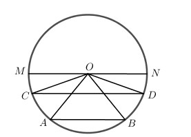 Xét 2 TH tâm O nằm ngoài hai dây song song và tâm O nằm trong hai dây song song. Chứng minh cung AM = cung BN và cung CM = cung DN .