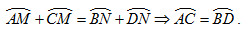 Chứng minh hoàn toàn tương tự ta có cung CM = cung DN