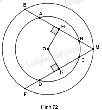 Cho hình 72 trong đó hai đường tròn có cùng tâm O. Cho biết AB > CD. Hãy so sánh các độ dài: