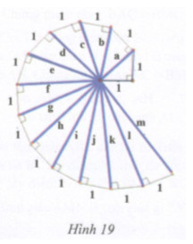 Lần lượt tính độ dài các cạnh huyền a, b, c, d của các tam giác vuông theo hình 19. Hãy dự đoán kết quả của các cạnh huyền còn lại.