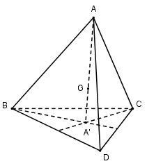 Gọi \(A’, B’, C’, D’\) lần lượt là trọng tâm của tam giác \(BCD, CDA, BDA, ABC\) của tứ diện đều \(ABCD\) có trọng tâm \(G\).