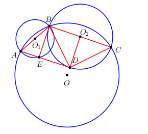 Chứng minh \(\widehat {EBD}\) và \(\widehat {{O_2}BD}\) cùng bằng \(\widehat {{O_2}DB}\).