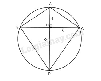 Suy ra: \(HD = \dfrac{{C{H^2}}}{{HA}} = \dfrac{{{{\left( {\dfrac{{BC}}{2}} \right)}^2}}}{{HA}}\)\( = \dfrac{{{{\left( {\dfrac{{12}}{2}} \right)}^2}}}{4} = \dfrac{{{6^2}}}{4} = \dfrac{{36}}{4} = 9\)