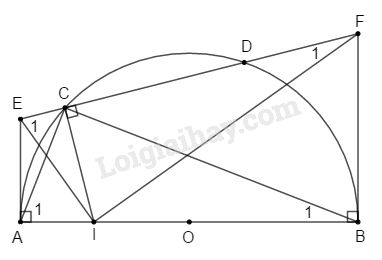 Cho nửa đường tròn đường kính \(AB\) và một dây \(CD\). Qua \(C\) vẽ đường thẳng vuông góc với \(CD\), cắt \(AB\) tại \(I\). Các tiếp tuyến tại \(A\) và \(B\) của nửa đường tròn cắt đường thẳng \(CD\) theo thứ tự tại \(E\) và \(F\). Chứng minh rằng: