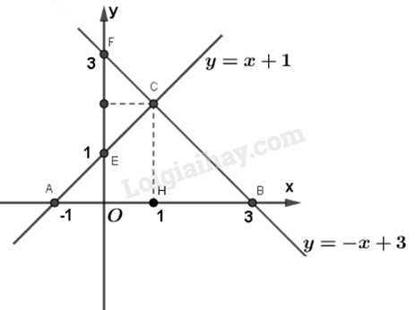 b) Hai đường thẳng y = x + 1 và y = -x + 3 cắt nhau tại C và cắt trục Ox theo thứ tự A và B. Tìm tọa độ của các điểm A, B, C.