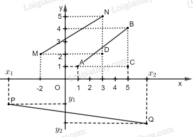 Cách 2: \(AB = \sqrt {{{\left( {{5} – {1}} \right)}^2} + {{\left( {{4} – {1}} \right)}^2}} \) = \(\sqrt {25}  = 5\)