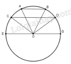 Từ (*) và (**) suy ra \(\widehat {EOA} – \widehat {EOC} = \widehat {BOG} – \widehat {DOG} \Leftrightarrow \widehat {AOC} = \widehat {BOD}  \) \( \Rightarrow \overparen{AC}\)\(=\overparen{BD}\) (đpcm)