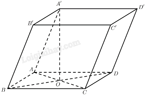 \({V_{ABCD.A’B’C’D’}} = {S_{ABC{\rm{D}}}}.A’O = \frac{{{a^3}\sqrt 3 }}{4}\)