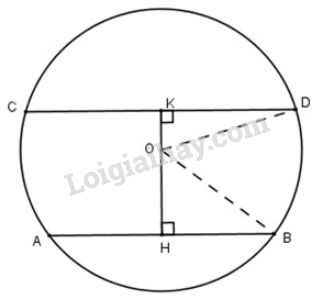 Ta có \(OK \bot DC\) và \(OH \bot AB\) nên \(KC=KD=\dfrac {CD}2\) và \(AH=HB=\dfrac {AB}2\) (vì đường kính vuông góc với dây thì đi qua trung điểm của dây ấy)