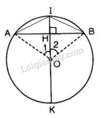 Ta có: \(OA = OB =\) bán kính. Suy ra đường kính \(IK\) là đường trung trực của dây \(AB\)