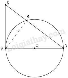 Trên đường tròn \((O)\) đường kính \(AB\), lấy điểm \(M\) (khác \(A\) và \(B\)). vẽ tiếp tuyến của \((O)\) tại \(A\). Đừờng thẳng \(BM\) cắt tiếp tuyến đó tại \(C\). Chứng minh rằng ta luôn có \(M{A^2} = {\rm{ }}MB.MC\)