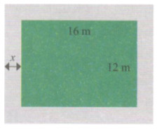 Sau khi làm một lối đi xung quanh mảnh đất hình chữ nhật, phần đất còn lại có chiều dài 16m, chiều rộng 12m (xem hình vẽ). Biết diện tích toàn bộ mảnh đất là 285 m2, hãy tìm chiều rộng x (m) của lối đi.