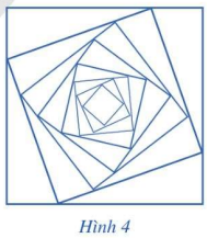 Một hình vuông \({C_1}\) có cạnh bằng 4. Người ta chia mỗi cạnh hình vuông thàng bốn phần bằng nhau và nối các điểm chia một cách thích hợp để có hình vuông \({C_2}\) (Hình 4). Từ hình vuông \({C_2}\) lại làm tiếp tục như trên để có hình vuông \({C_3}\). Cứ tiếp tục quá trình như trên, ta nhận được dãy các hình vuông \({C_1},{C_2},{C_3},..,{C_n},…\). Gọi \({a_n}\) là độ dài cạnh hình vuông \({C_n}\). Chứng minh rằng dãy số \(\left( {{a_n}} \right)\) là cấp số nhân.