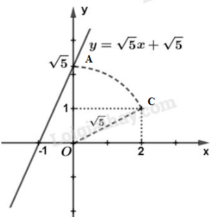 Bước \(3\): Kẻ đường thẳng đi qua hai điểm \(A(0; \sqrt 5)\) và \((-1; 0)\) ta được đồ thị của hàm số \(y = \sqrt 5 x + \sqrt 5 \).