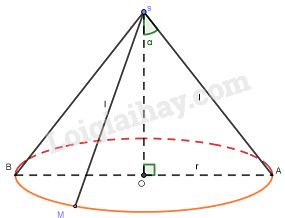 \(\begin{array}{l}h = AH = \sqrt {A{B^2} – B{H^2}} \\ = \sqrt {{a^2} – {{\left( {\frac{{a\sqrt 3 }}{3}} \right)}^2}}  = \frac{{a\sqrt 6 }}{3}\\ \Rightarrow {S_{xq}} = 2\pi Rh\\ = 2\pi .\frac{{a\sqrt 3 }}{3}.\frac{{a\sqrt 6 }}{3} = \frac{{2\pi {a^2}\sqrt 2 }}{3}\end{array}\)