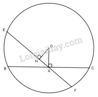 Cho đường tròn \((O)\), điểm \(A\) nằm bên trong đường tròn. Vẽ dây \(BC\) vuông góc với \(OA\) tại \(A\). Vẽ dây \(EF\) bất kì đi qua \(A\) và không vuông góc với \(OA\). Hãy so sánh độ dài hai dây \(BC\) và \(EF\).
