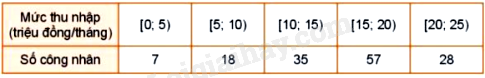 Cho mẫu số liệu ghép nhóm về thu thập của các công nhân tại một doanh nghiệp lớn: