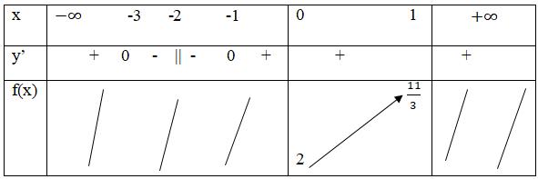 \(f’\left( x \right) = 0 \Leftrightarrow  x=- 1 \in \left[ { – 2;3} \right]\)