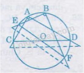 + Tâm đường tròn chính là giao điểm O của hai cạnh huyền DC và EF của hai tam giác vuông nội tiếp đường tròn.