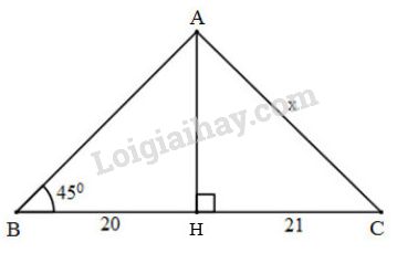 Xét tam giác \(BHA\) vuông tại \(H\) có \( \widehat{B} = 45^o\), \(BH=20\) nên: