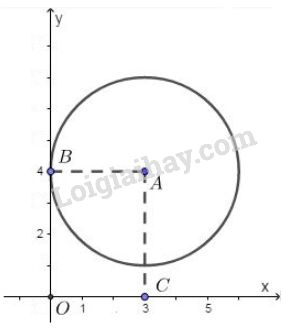 Trên mặt phẳng tọa độ \(Oxy\), cho điểm \(A(3;4)\). Hãy xác định vị trí tương đối của đường tròn \((A;3)\) và các trục tọa độ.