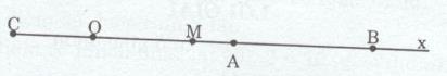 c) Lấy điểm C thuộc tia đối của tia Ox sao cho OC = 2cm. Gọi M là trung điểm của đoạn thẳng BC. Tính độ dài OM.