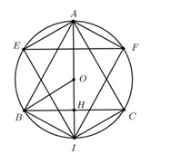b) Giả sử \(AB = R\sqrt 3 \), AO cắt BC tại H và cắt đường tròn O tại I. Chứng minh tam giác ABC đều và tính độ dài AH.