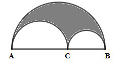 Diện tích nửa hình tròn đường kính AB là \({S_1} = \dfrac{1}{2}\pi {\left( {\dfrac{{AB}}{2}} \right)^2} = \dfrac{1}{2}\pi {.5^2} = \dfrac{{25}}{2}\pi \,\,\,\left( {c{m^2}} \right)\)