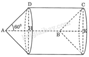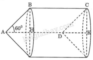Bán kính đáy: \(\displaystyle BH = AB. \sin 60^o = 1.{{\sqrt 3 } \over 2}={{\sqrt 3 } \over 2}\)