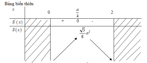 Ta có : \(S’\left( x \right) = \sqrt 3 \left( {a – 4x} \right)\)