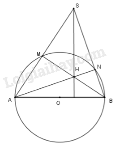 Cho một đường tròn tâm \(O\), đường kính \(AB\) và \(S\) là một điểm nằm ngoài đường tròn. \(SA\) và \(SB\) lần lượt  cắt đường tròn tại \(M, N\). Gọi \(H\) là giao điểm của \(BM\) và \(AN\). Chứng minh rằng \(SH\) vuông góc với \(AB\).