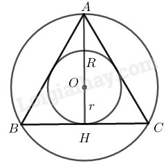 Giả sử \(\Delta ABC\) đều ngoại tiếp đường tròn \((O,r)\), nội tiếp đường \((O,R)\)