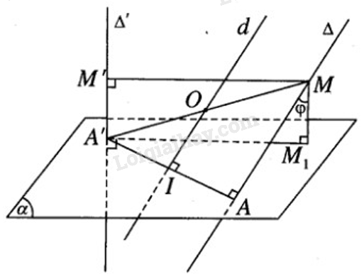 Cho hai đường thẳng chéo nhau \(\Delta \) và \(\Delta ‘\) có AA’ là đoạn vuông góc chung, trong đó \(A \in \Delta \) và \(A’ \in \Delta ‘\). Gọi \((\alpha )\) là mặt phẳng chứa AA’ và vuông góc với  \(\Delta ‘\) và cho biết AA’ = a. Một đường thẳng thay đổi luôn luôn song song với mặt phẳng \((\alpha )\)  lần lượt cắt \(\Delta \) và \(\Delta ‘\)  tại M và M’. Hình chiếu vuông góc của M trên mặt phẳng \((\alpha )\)  là M1.