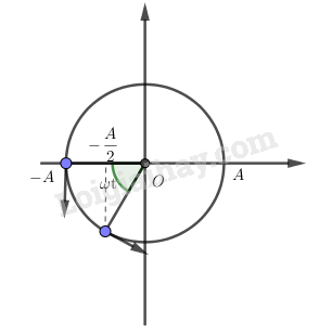 + Tìm \(\varphi \): \(t = 0:{x_0} = A\cos \varphi  =  – A \Leftrightarrow \cos \varphi  =  – 1 \Leftrightarrow \varphi  = \pi (rad)\)