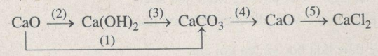 5. CaO + 2HCl \(\xrightarrow{{}}\)  CaCl2 + H2O