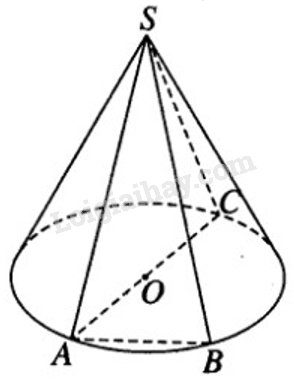 Xét hai đường sinh \(SA , SB\) tùy ý của hình nón. Vẽ đường kính \(AC\) của đường tròn đáy.