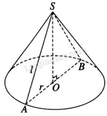 Khi có hai đường sinh vuông góc với nhau ta có tam giác vuông có diện tích là \(\displaystyle {1 \over 2}{l^2}\).