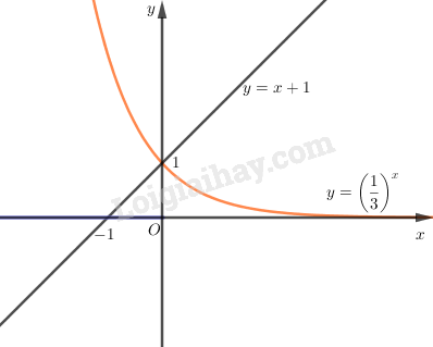 Khi \(\displaystyle x < 0\) đồ thị của hàm số \(\displaystyle y = {\left( {\frac{1}{3}} \right)^x}\) nằm phía trên đường thẳng \(\displaystyle y = x + 1\).