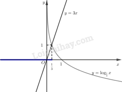 Khi \(\displaystyle x < \frac{1}{3}\) đồ thị của hàm số \(\displaystyle y = {\log _{\frac{1}{3}}}x\) nằm phía trên đường thẳng \(\displaystyle y = 3x\).