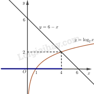 Khi \(\displaystyle x < 4\), đồ thị của hàm số \(\displaystyle y = {\log _2}x\) nằm phía dưới \(\displaystyle y = 6 – x\) .