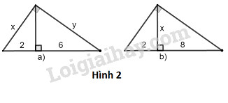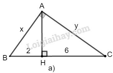 \(A{B^2} = BH.BC\) hay \({x^2} = 2.(2 + 6) = 2.8 = 16 \)\(\Rightarrow x = 4\)