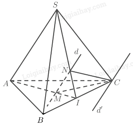 \( \Rightarrow \)Giao tuyến của hai mặt phẳng \(\left( {SAC} \right)\) và \(\left( {CMN} \right)\) là đường thẳng \(d’\) đi qua \(C\), song song với \(SA\) và \(d\).